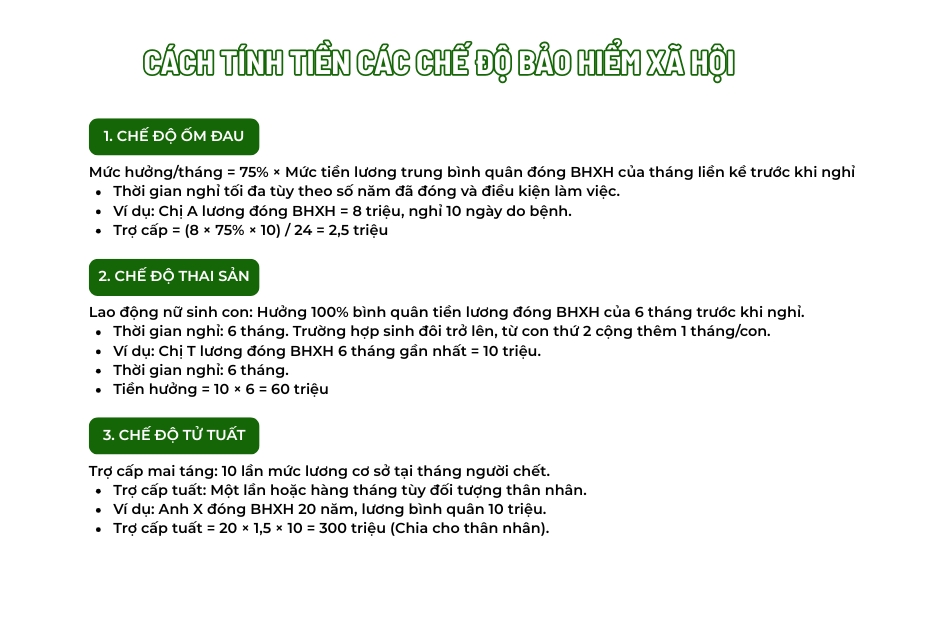 Công thức tính 5 chế độ cơ bản của bảo hiểm xã hội