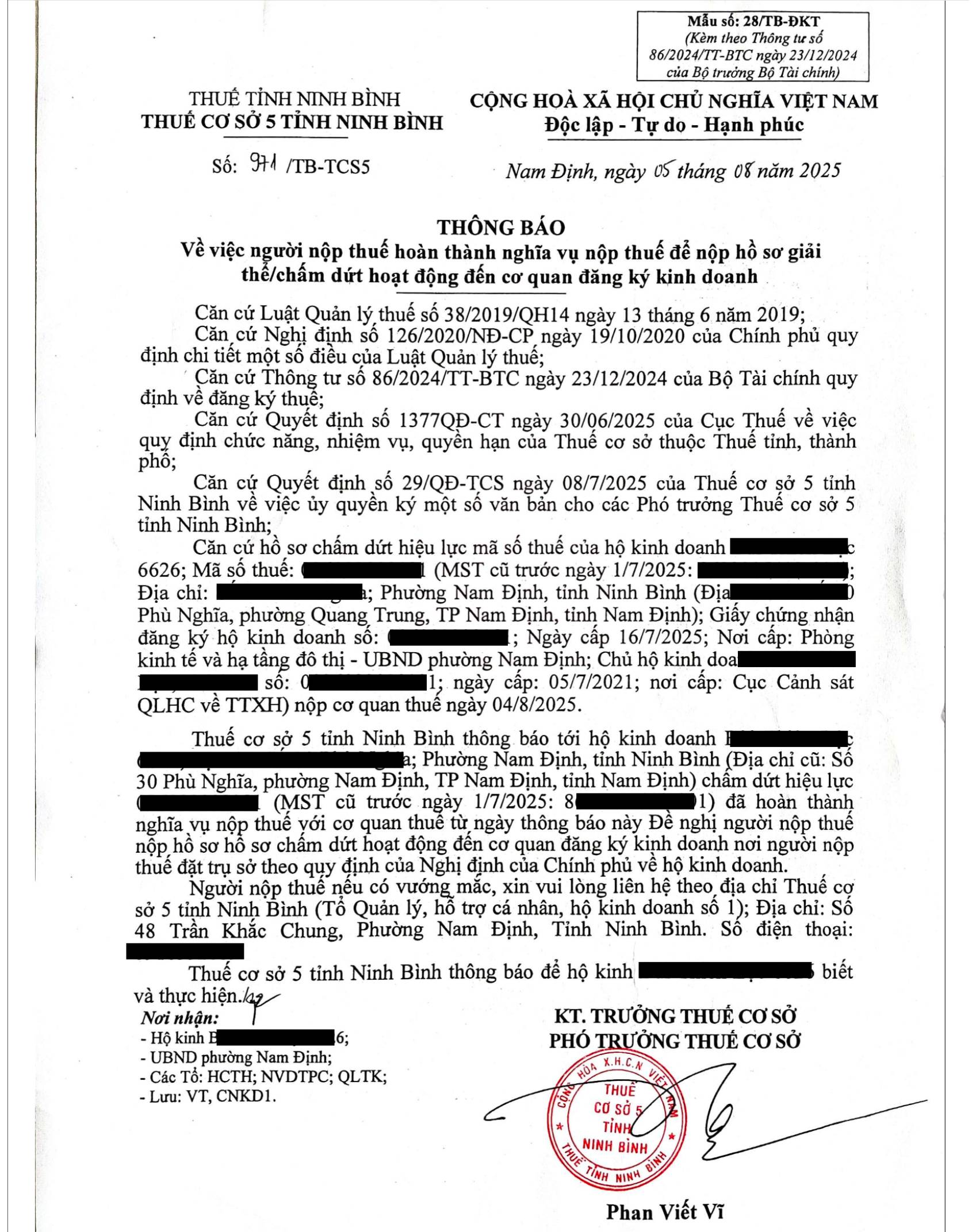 Sau khi được phê duyệt, hộ kinh doanh chính thức chấm dứt hoạt động.