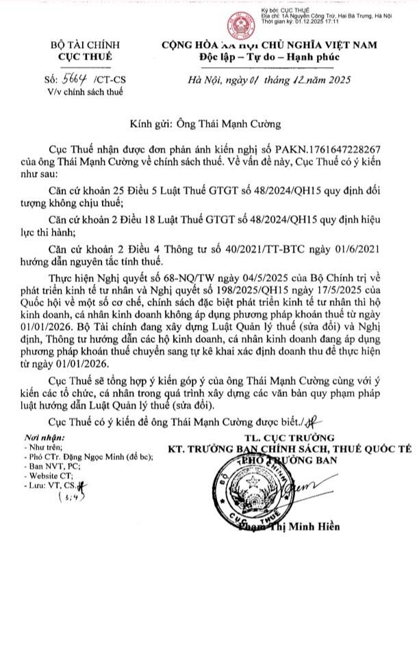 Theo định hướng chính sách, từ 01/01/2026, cơ chế thuế khoán sẽ bị xóa bỏ hoàn toàn. Điều này đồng nghĩa với việc các hộ kinh doanh không còn khai doanh thu một lần vào đầu năm hoặc khi mới bắt đầu hoạt động như trước đây. Thay vào đó, thuế sẽ được tính dựa trên doanh thu thực tế phát sinh theo từng kỳ, và hộ kinh doanh phải tự chủ động kê khai.