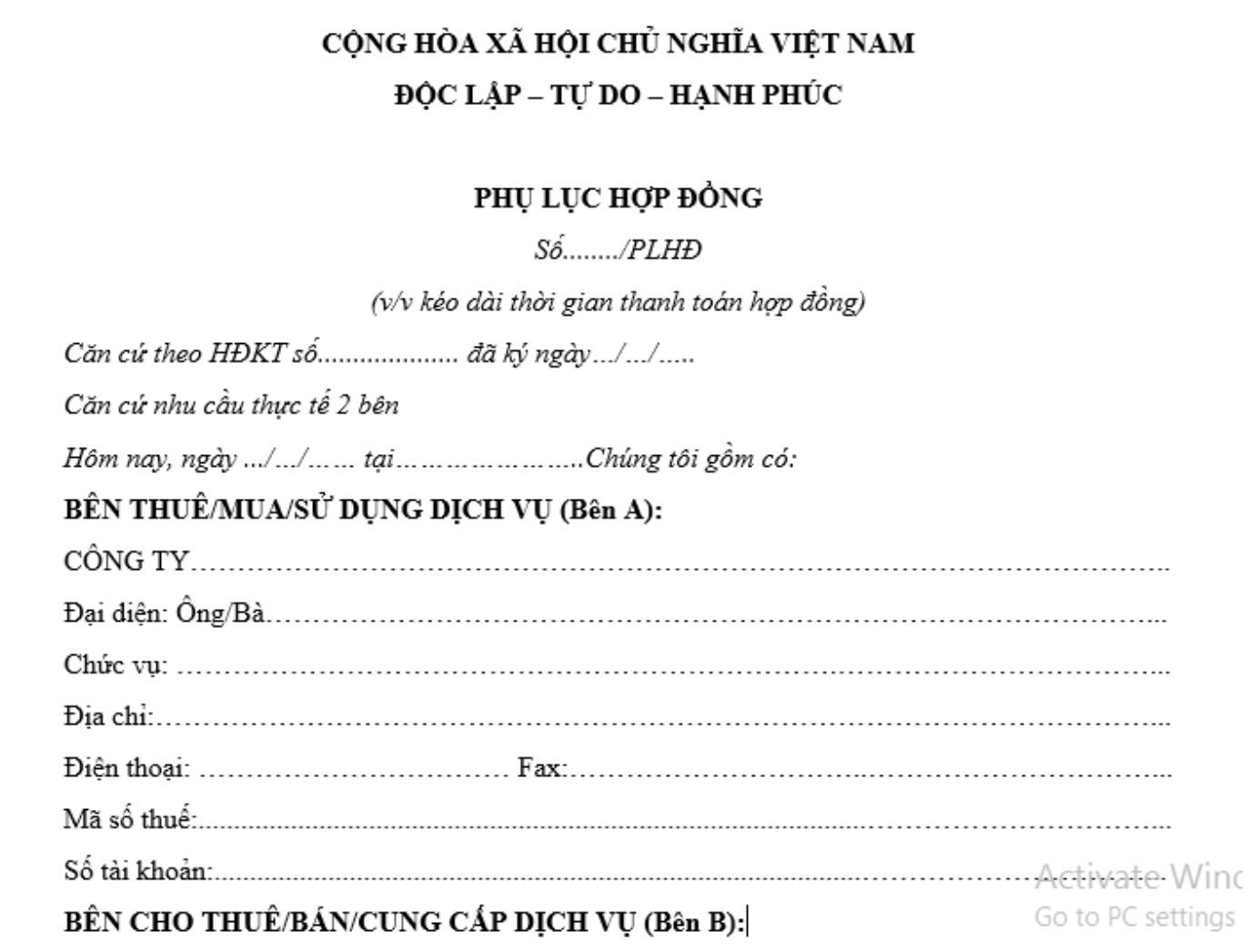3. Mẫu phụ lục gia hạn thời gian thanh toán năm 2025